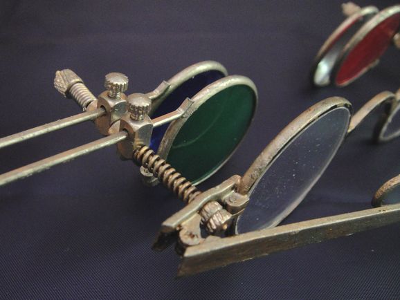 普通の眼鏡に左右2枚づつのカラーレンズを持った特殊な構造。